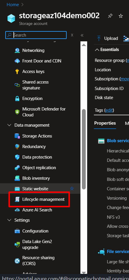 Manage Azure Storage Accounts and implement data lifecycle policies.