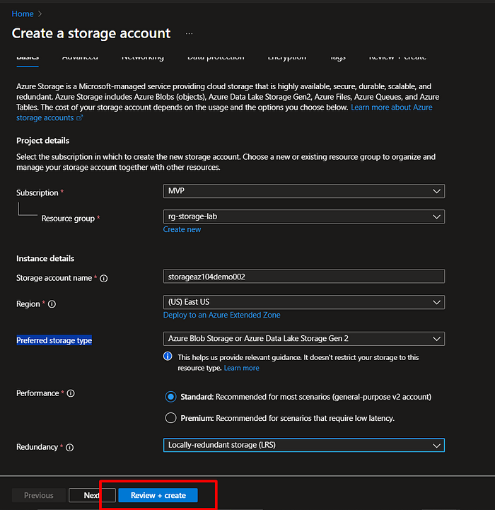 - Preferred storage type: Azure Blob Storage or Azure Data Lake Storage Gen 2