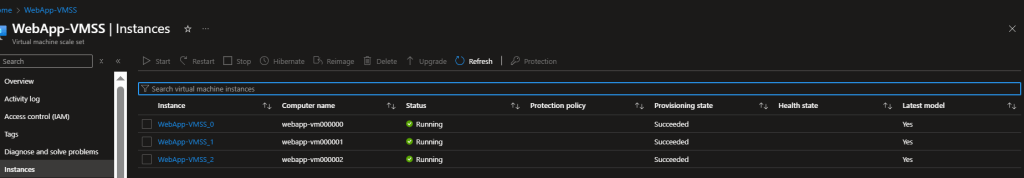 az vmss update-instances \ --resource-group <ResourceGroup> \ --name WebApp-VMSS \ --instance-ids "*"