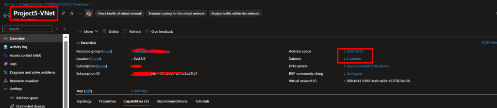 A Virtual Network (VNet) is your private network in Azure. We’ll create one with two subnets.
