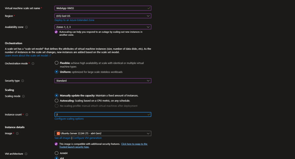 - Virtual Machine Scale Set (VMSS) – Auto-scaling web servers that grow and shrink based on demand