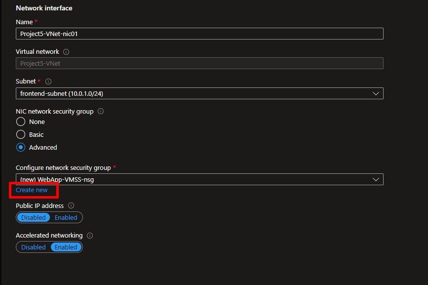 NB: Here I used the backend subnet because I used the frontend subnet for the VMMS: realised this late, but you can go ahead with what you have.