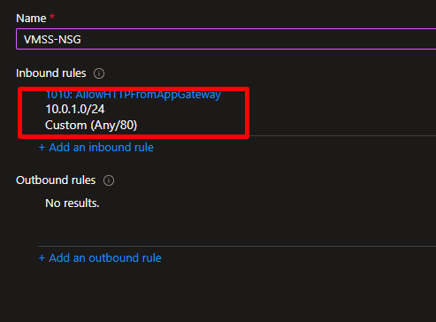 We’ll create separate subnets for frontend (Application Gateway) and backend (VMSS) components. This follows the security principle of “least privilege” – each component only has access to what it needs.