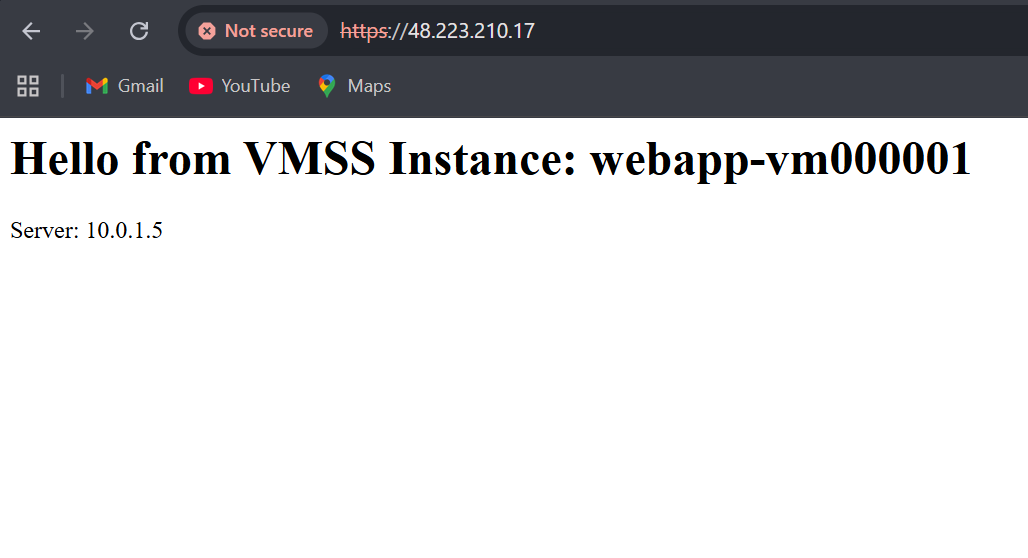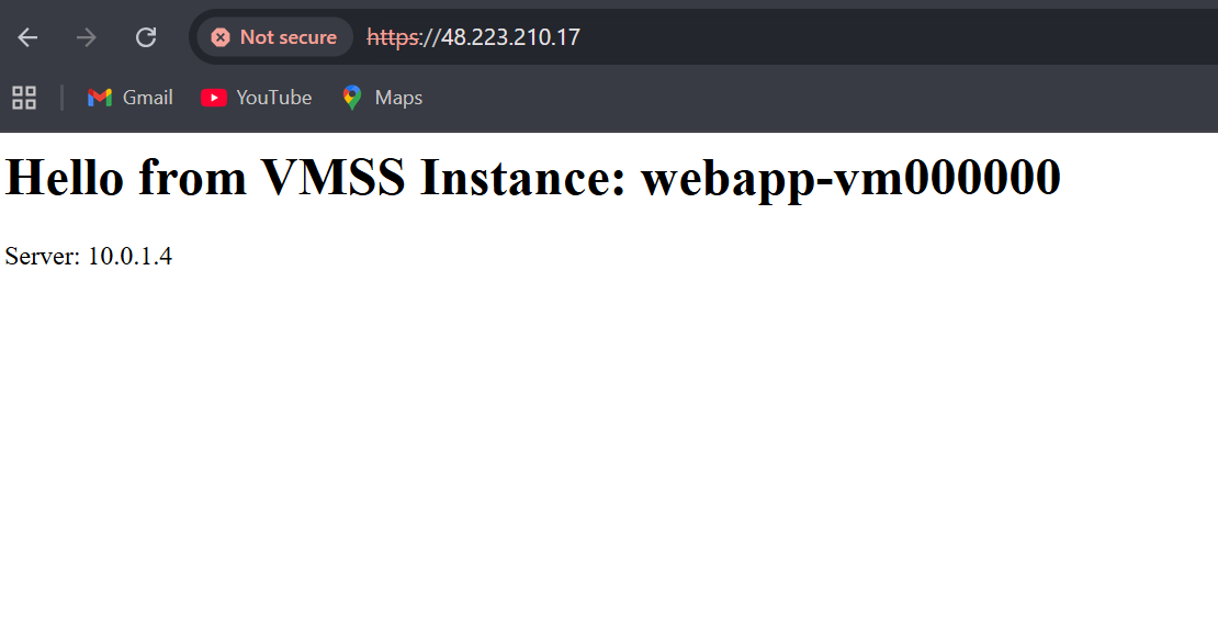 Refresh the page multiple times. You should see the hostname change, showing that Application Gateway is distributing traffic across different VM instances.