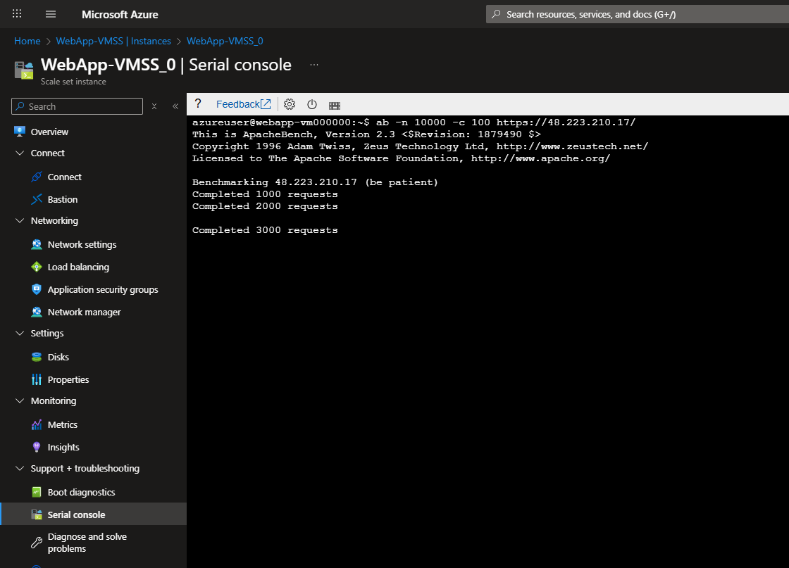 - SSH into one of your VMSS instances (you’ll need to set up a bastion host or add a temporary NSG rule allowing SSH)