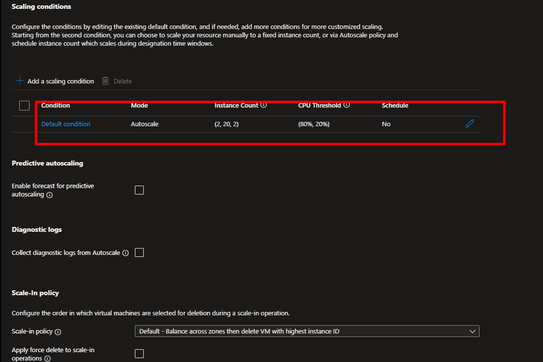 4. Scaling tab: select Autoscaling: Scaling based on a CPU metric, on any schedule.