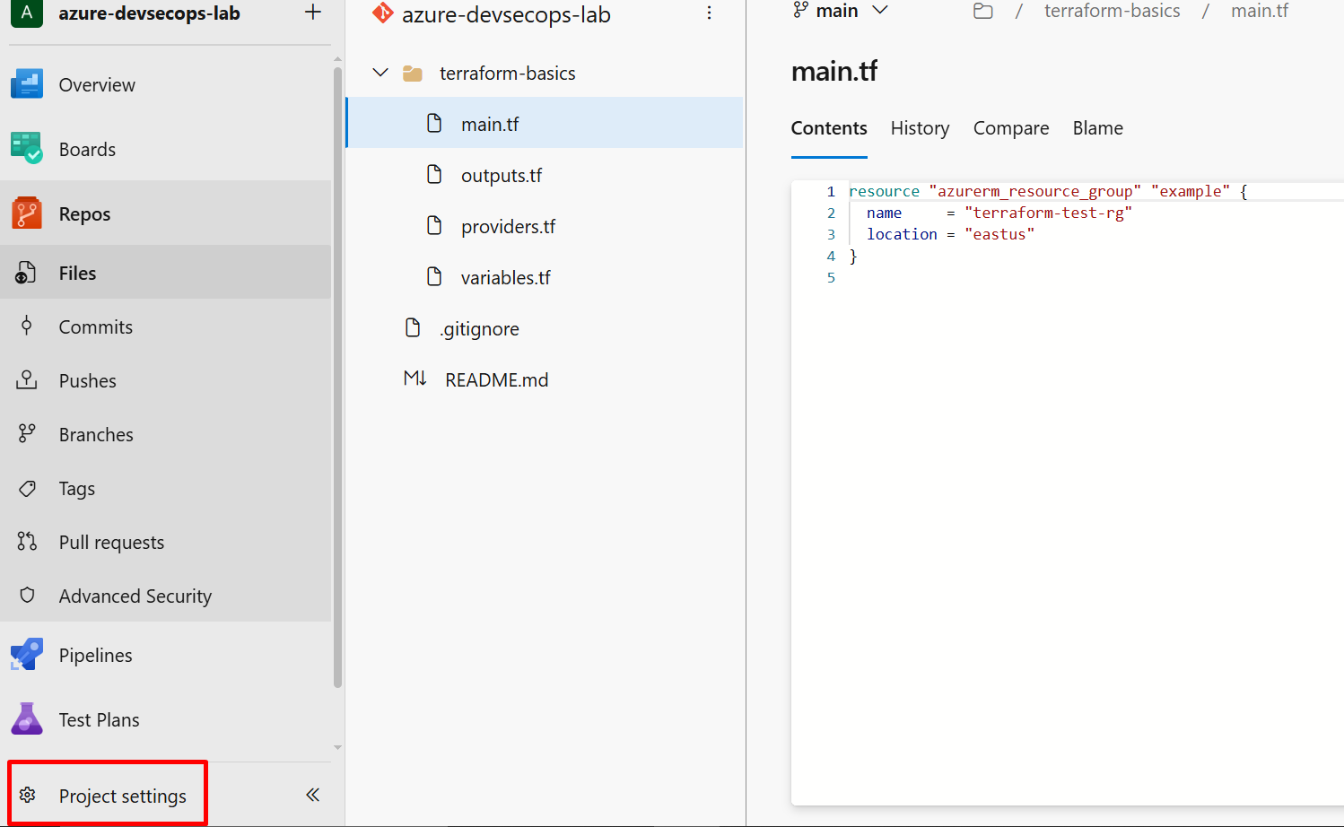 Azure-DevSecOps-Labproject - We’ll be adding our Terraform code to this project’s repository