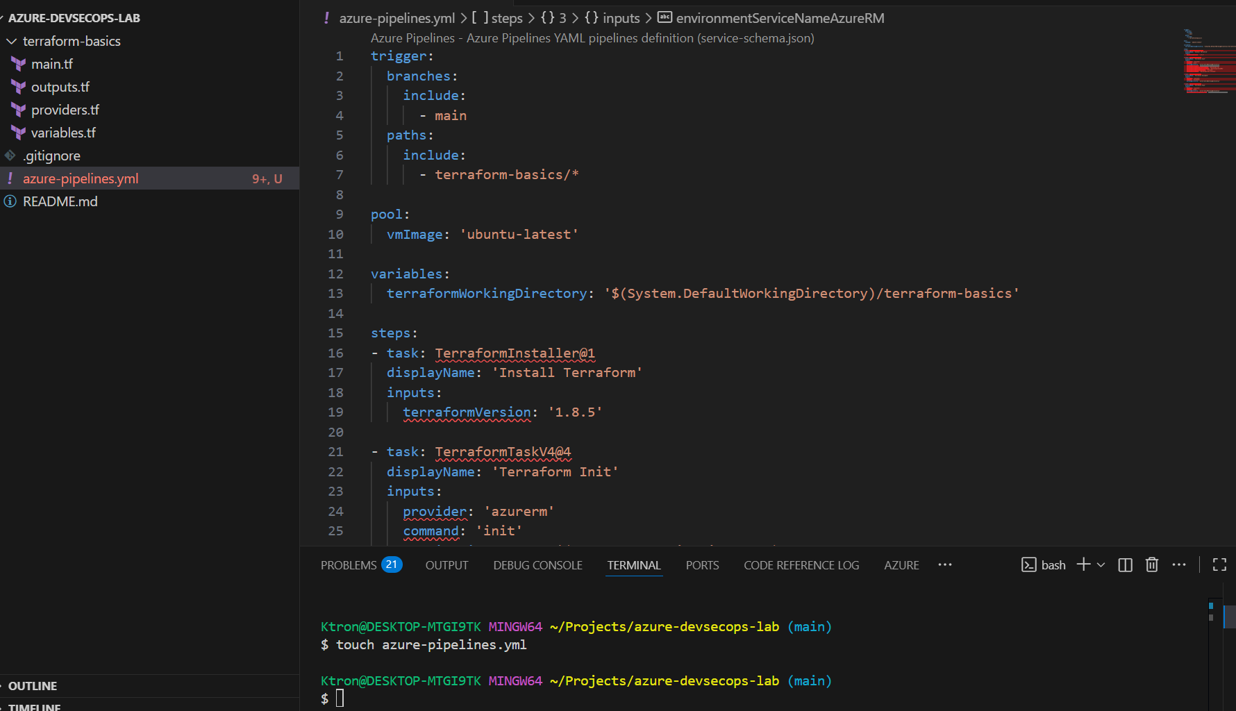 azure-devsecops-connection) - Verify your folder structure – Terraform files should be in
