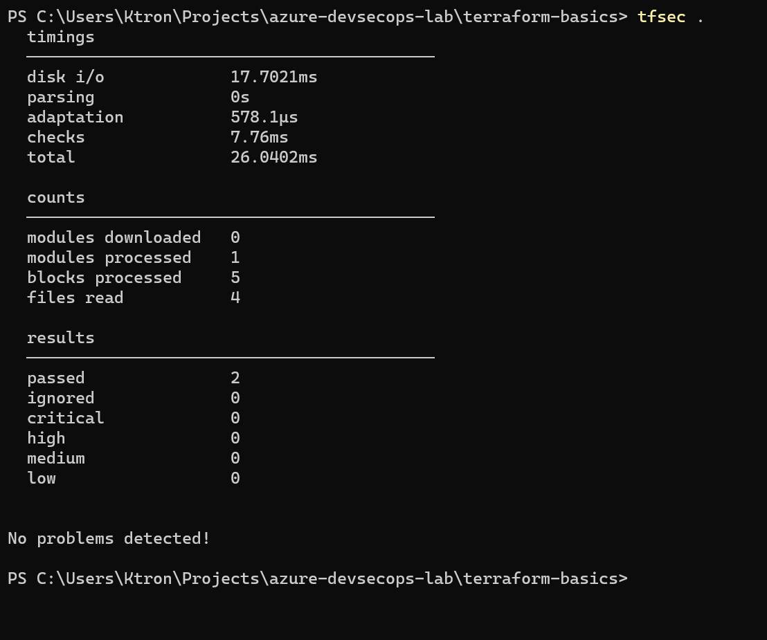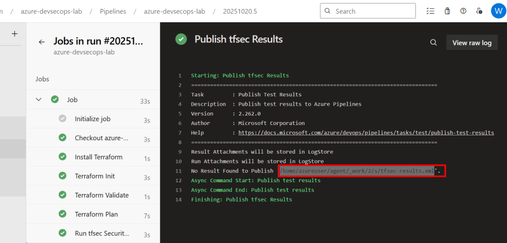 Note: We’re using $(terraformWorkingDirectory) to scan your terraform-basics folder specifically!