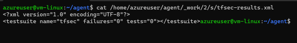 tfsec $(terraformWorkingDirectory) --format junit > tfsec-results.xml