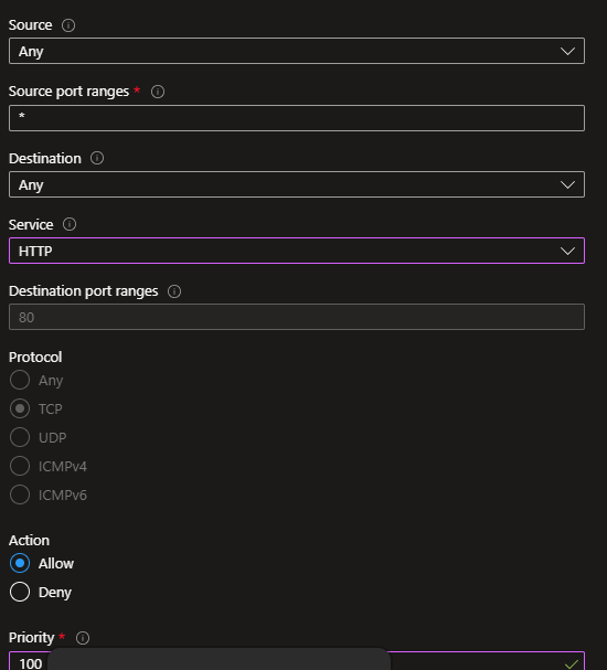 pip-vm-web-01 - NIC Network Security Group: Advanced → Create new