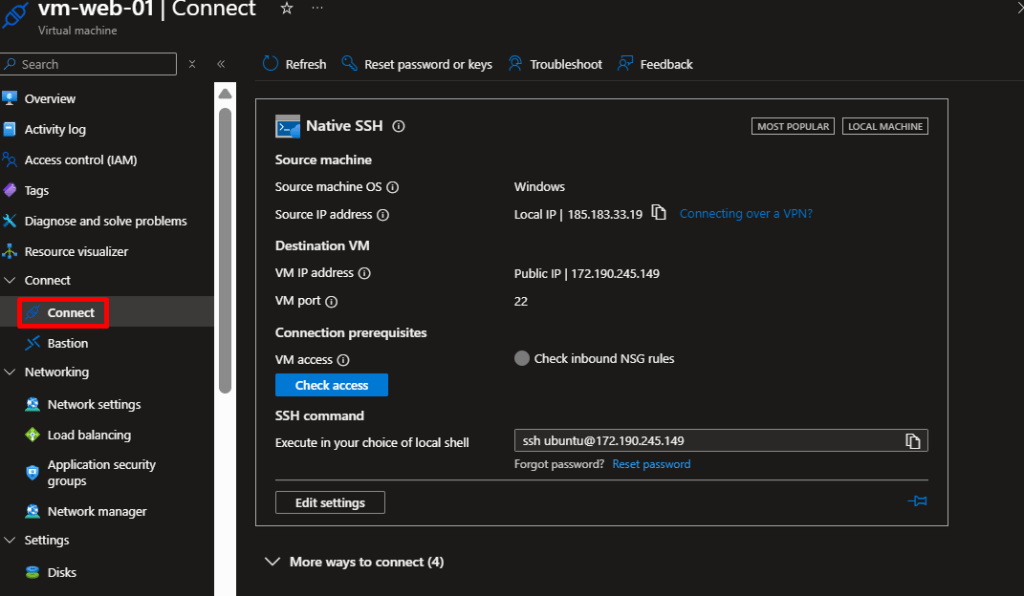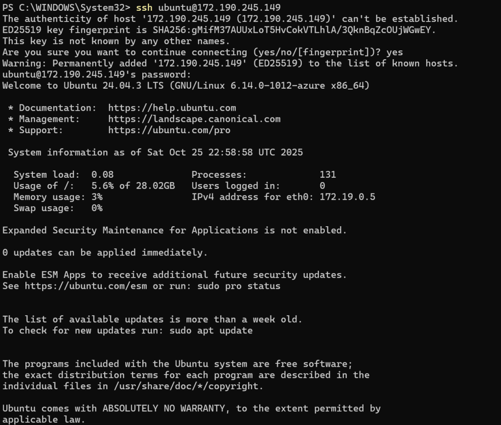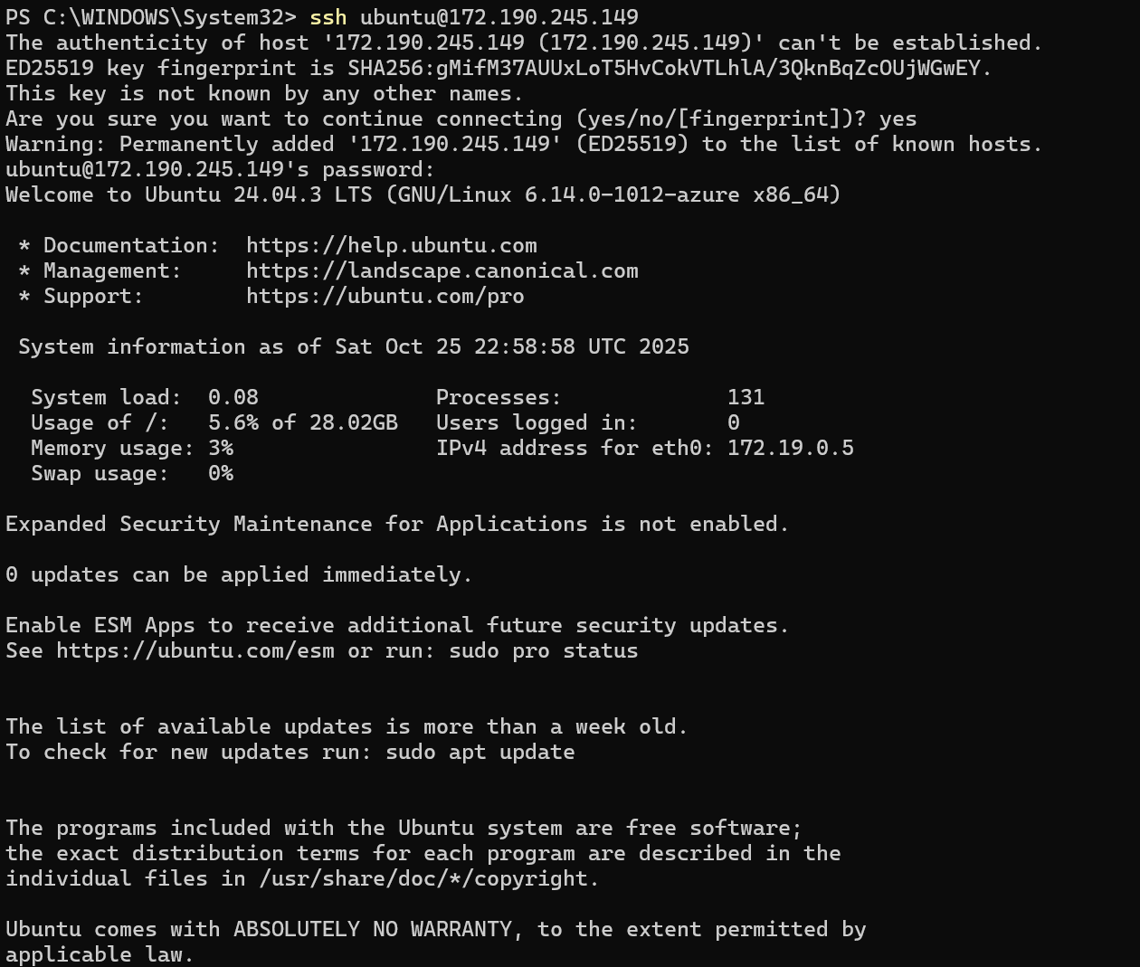 ssh azureuser@<public-ip>) - Open your local terminal and paste the command