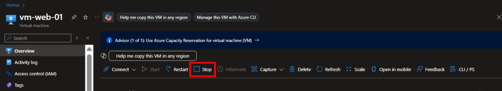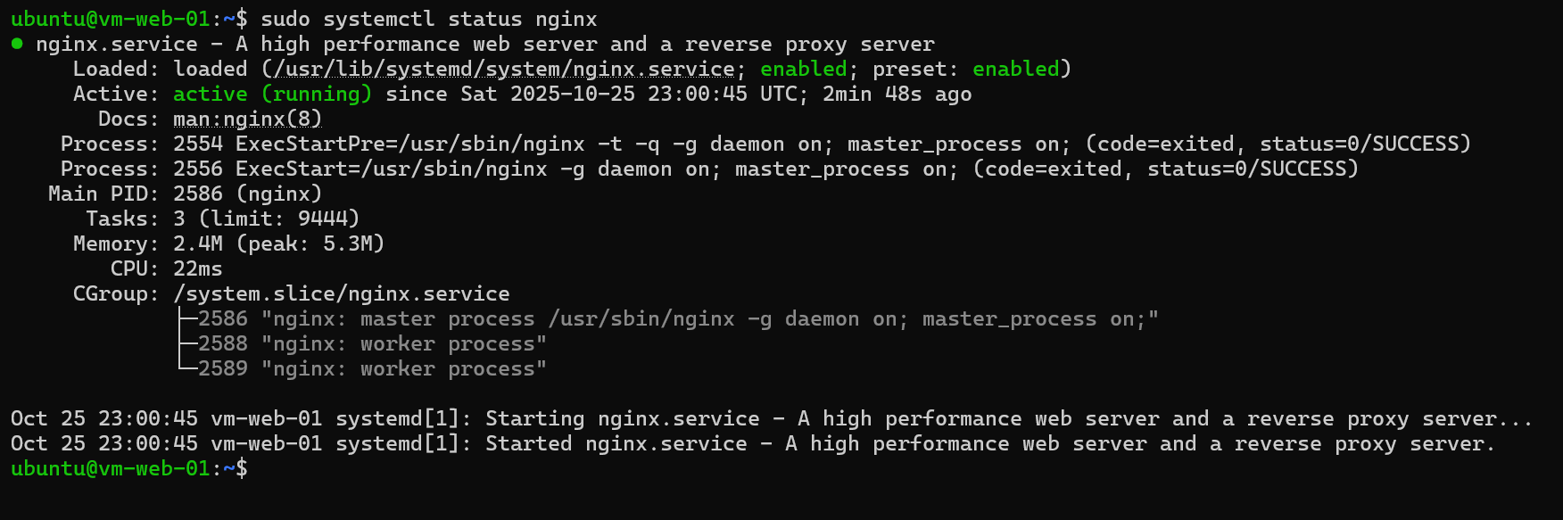 echo '<h1>Hello from VM1!</h1><p>Server: vm-web-01</p>' | sudo tee /var/www/html/index.html
