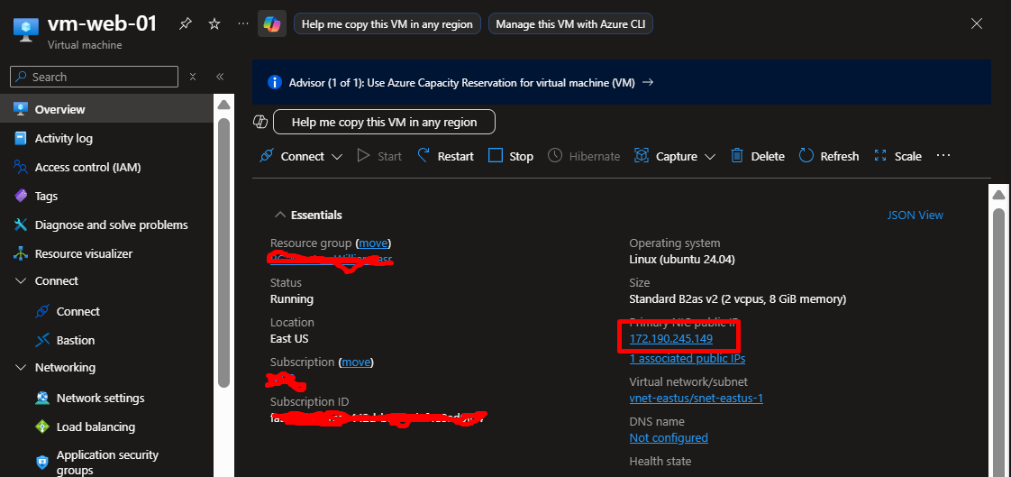 - Navigate to VM1’s public IP address (find it in Azure Portal)