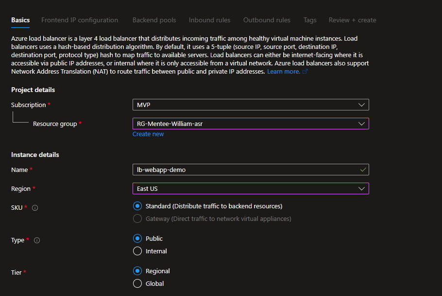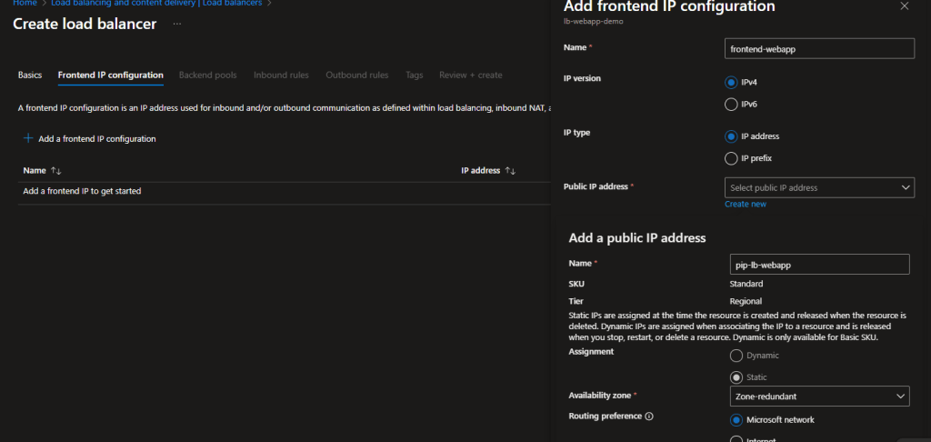 lb-webapp-demo) - Click “Frontend IP configuration” in the left menu