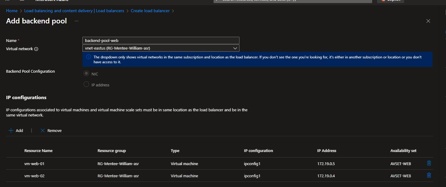 backend-pool-web - You’ll see each VM’s health status (Healthy/Unhealthy)