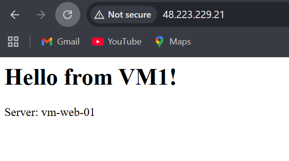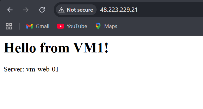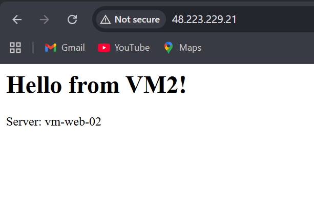 - You should see either “Hello from VM1!” or “Hello from VM2!”