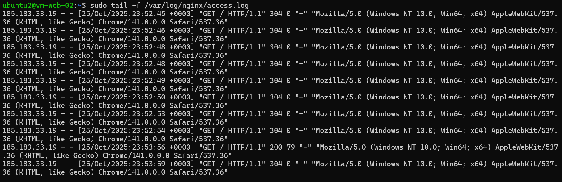 echo "<h1>Hello from VM2!</h1><p>Server: vm-web-02</p>" | sudo tee /var/www/html/index.html