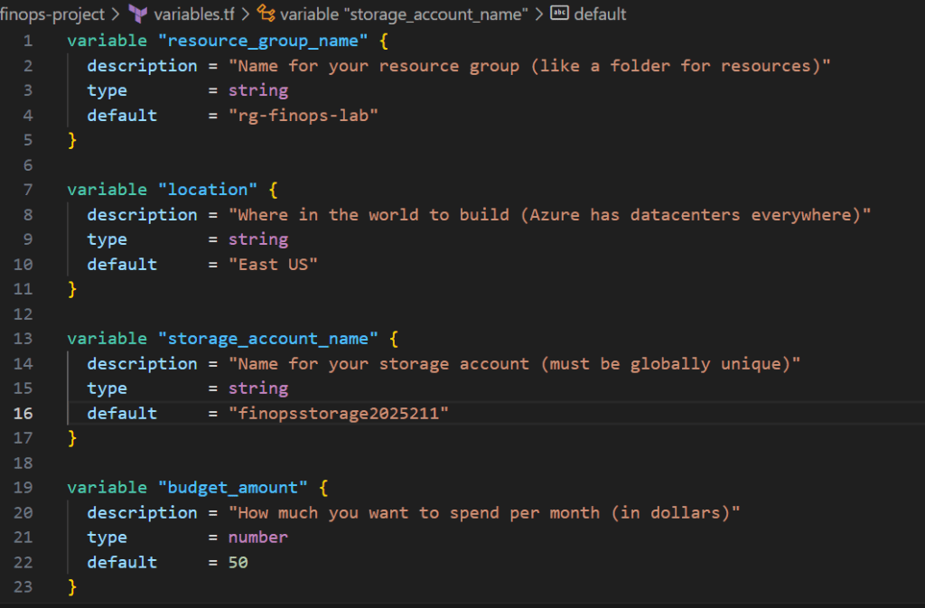default = "finopsstorage2025"