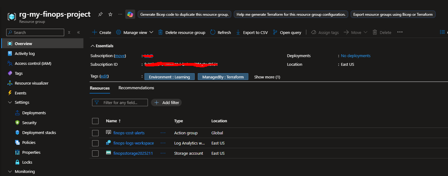 rg-my-finops-project) - Click it you should see the resources: