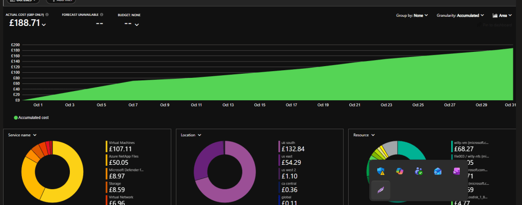 - Accumulated cost: Total so far this month